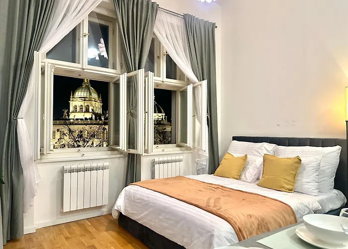 Het appartement, gelegen in de wijk Wenceslausplein in Praag, bevindt zich vlak bij de Staatsopera van Praag.